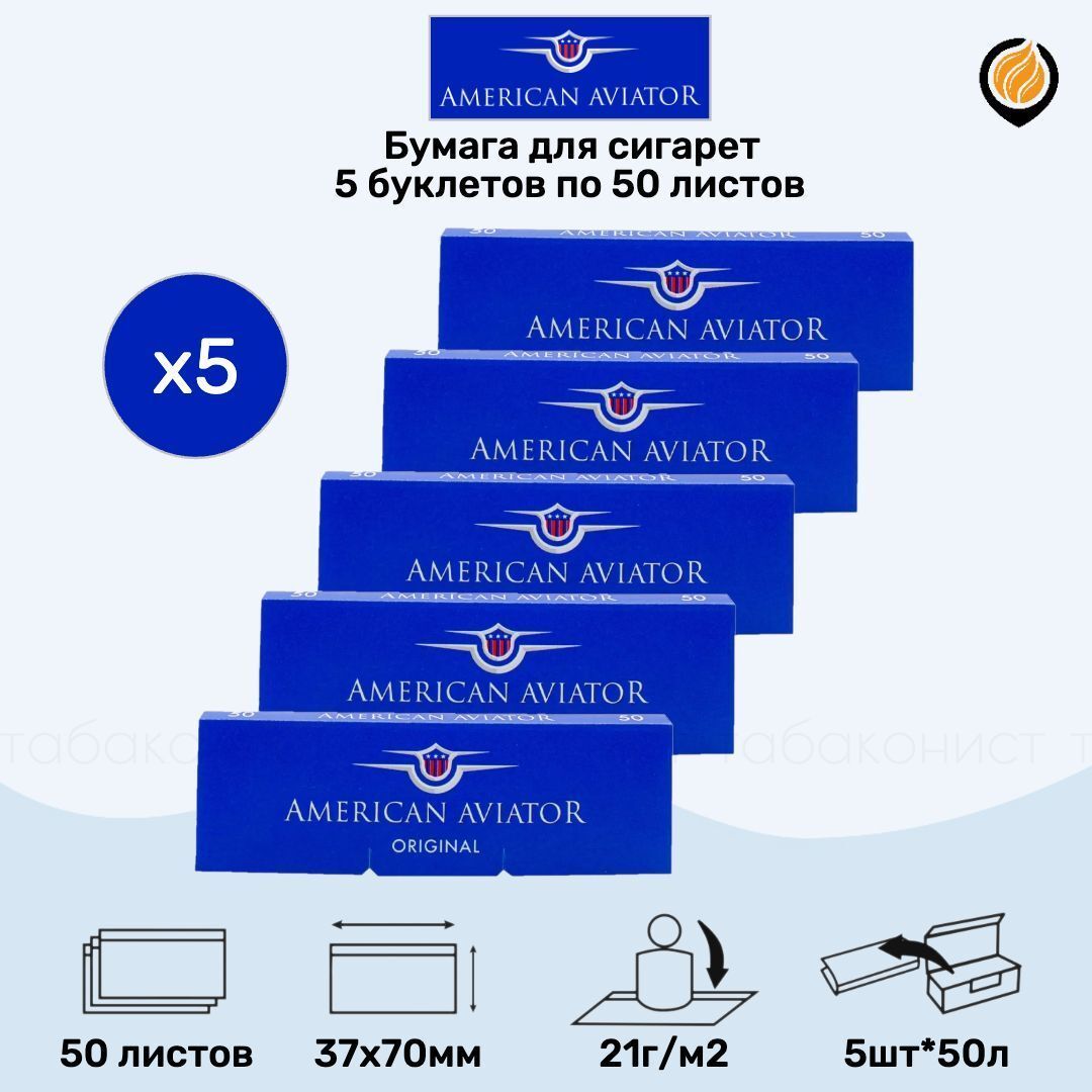 Бумага для сигарет "American Aviator" Original (5 пачек по 50 листов)